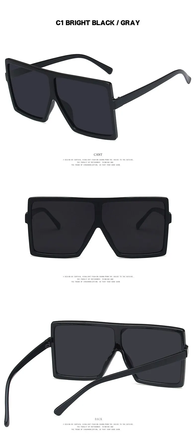 Oversized Shades Sunglasses Woman Black Fashion Square Sun Glasses For Female Bi